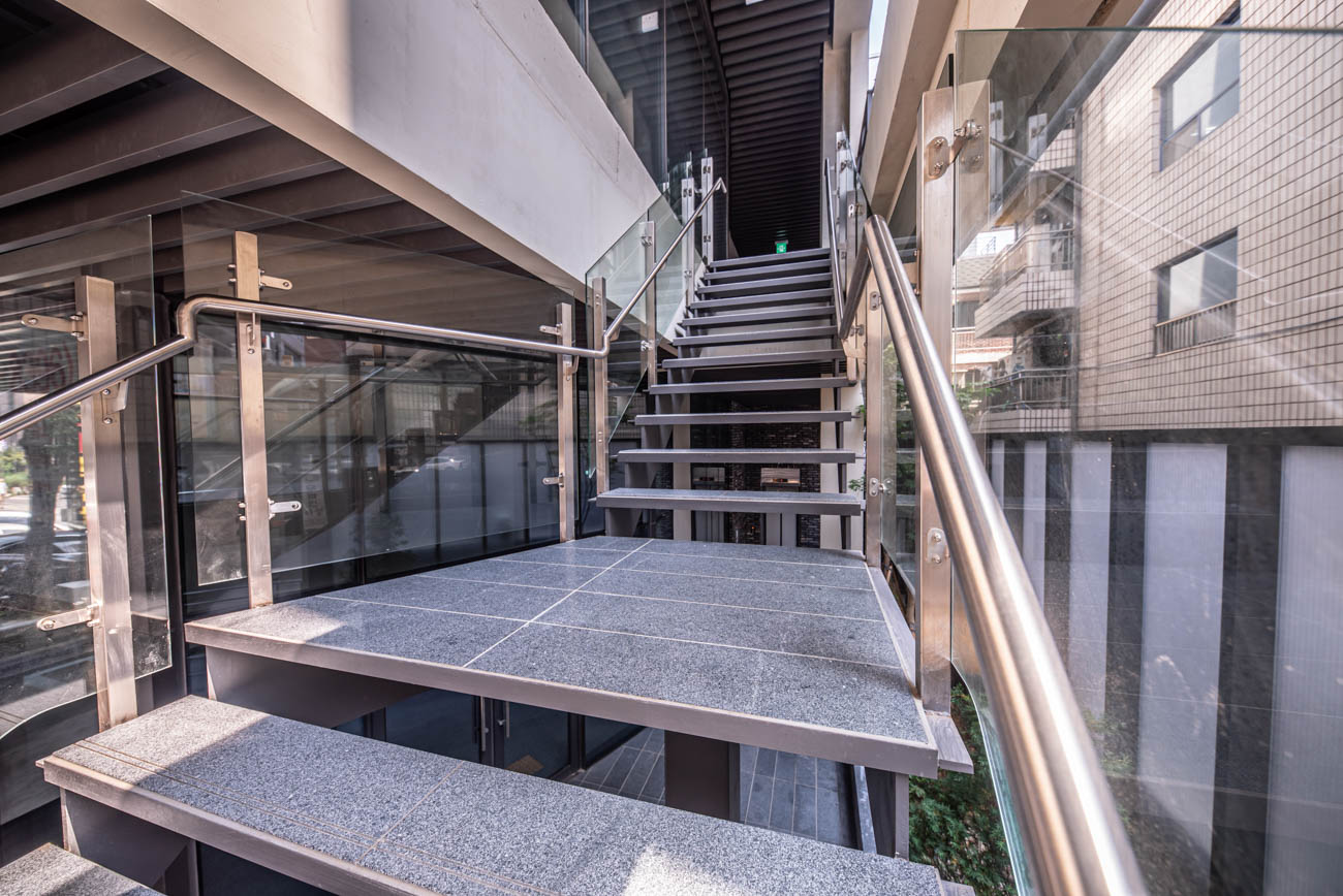 절제된 채광과 유리난간이 어우러져 빈티지하면서도 현대적인 느낌을 줍니다.