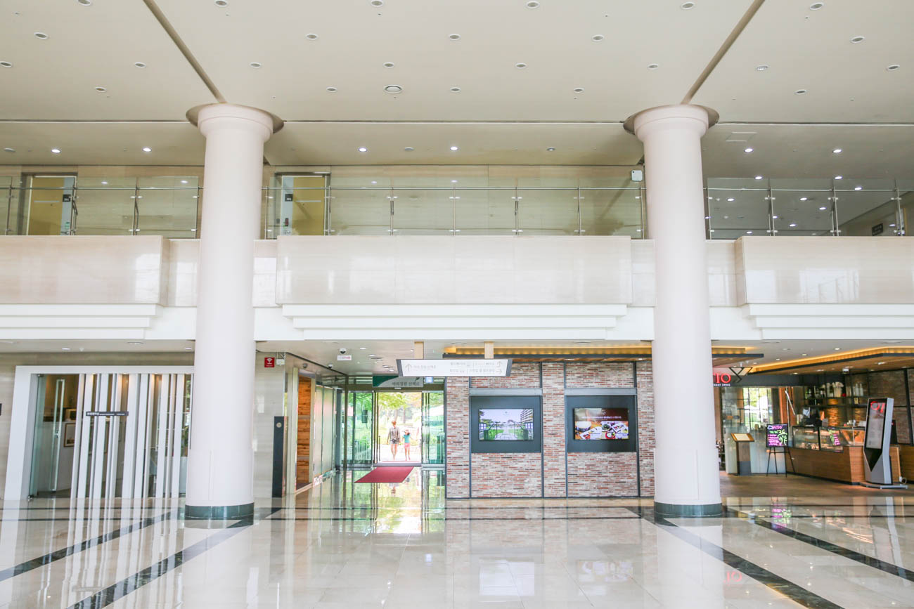 2층 복도에서도 답답하지 않고 넓은 로비를 내려다볼 수 있습니다.