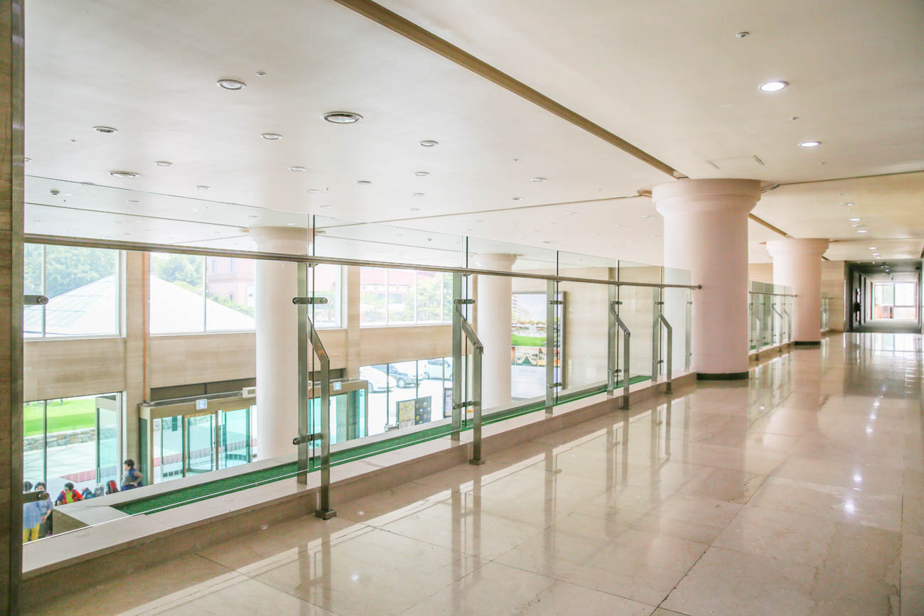 - 전체 공간 적용 – 로비, 복도, 휴게공간 등 전 구간 강화유리 적용