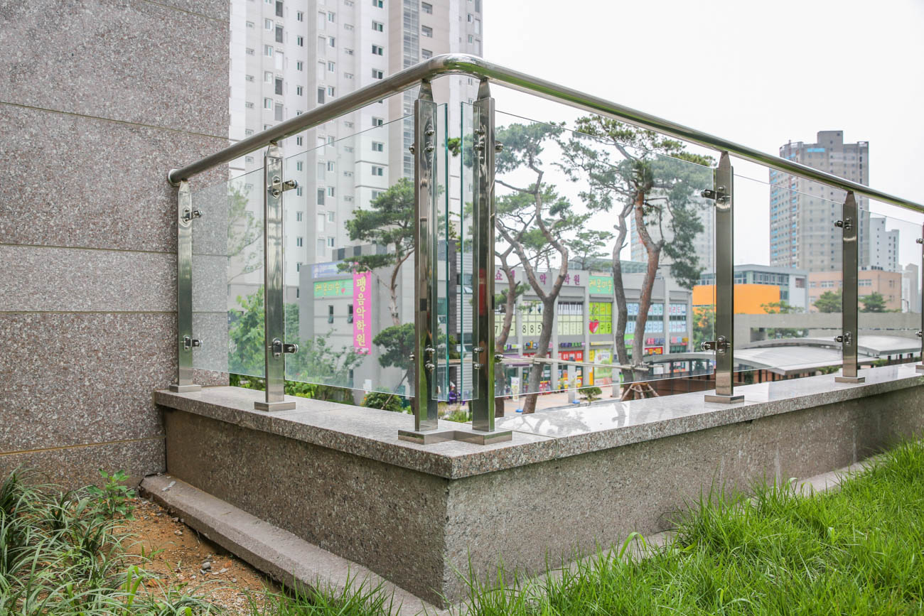 관리사무소 위쪽 구간에 설치된 강화유리난간입니다.