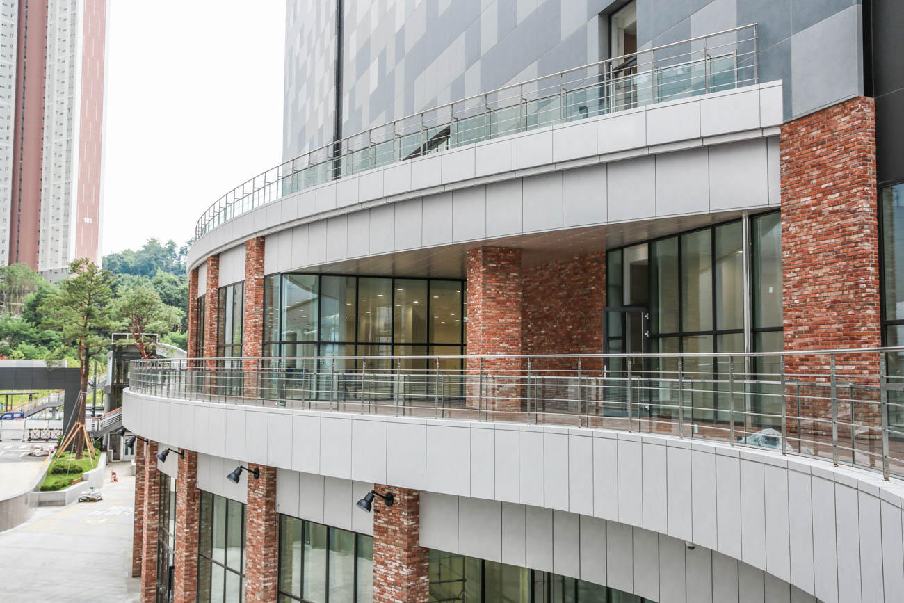 - 외관: 곡선형 파사드와 어울리는 유리난간 적용으로 개방감·채광 극대화