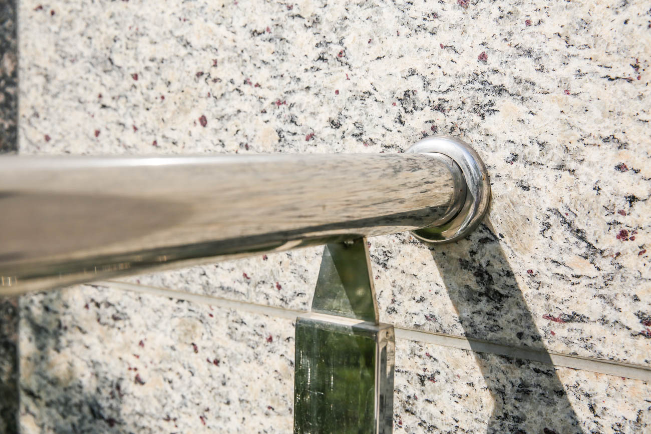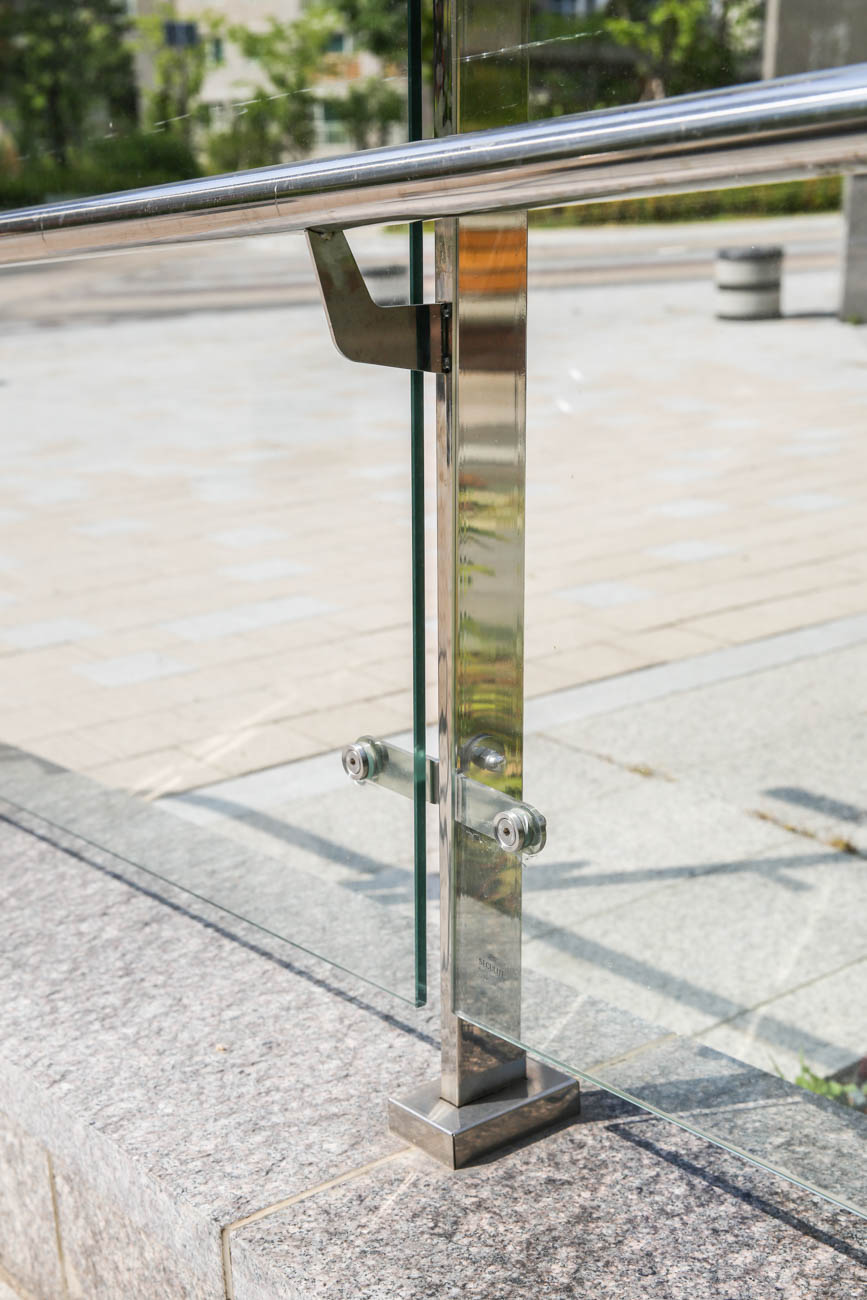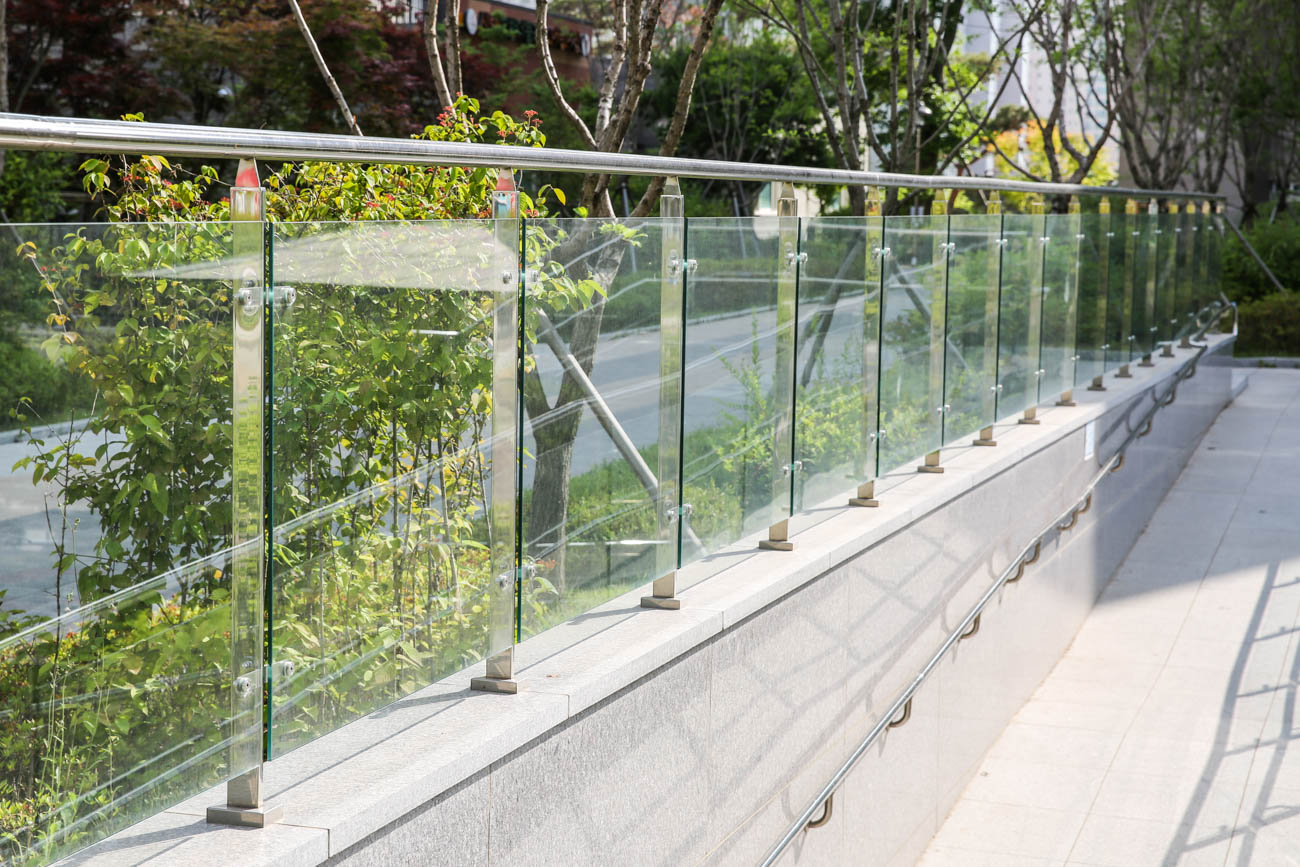 오르막 구간은 3층 구조로 강화유리 난간을 배치했으며, 벽 고정 마감은 캡 마감으로 깔끔하게 처리했습니다.