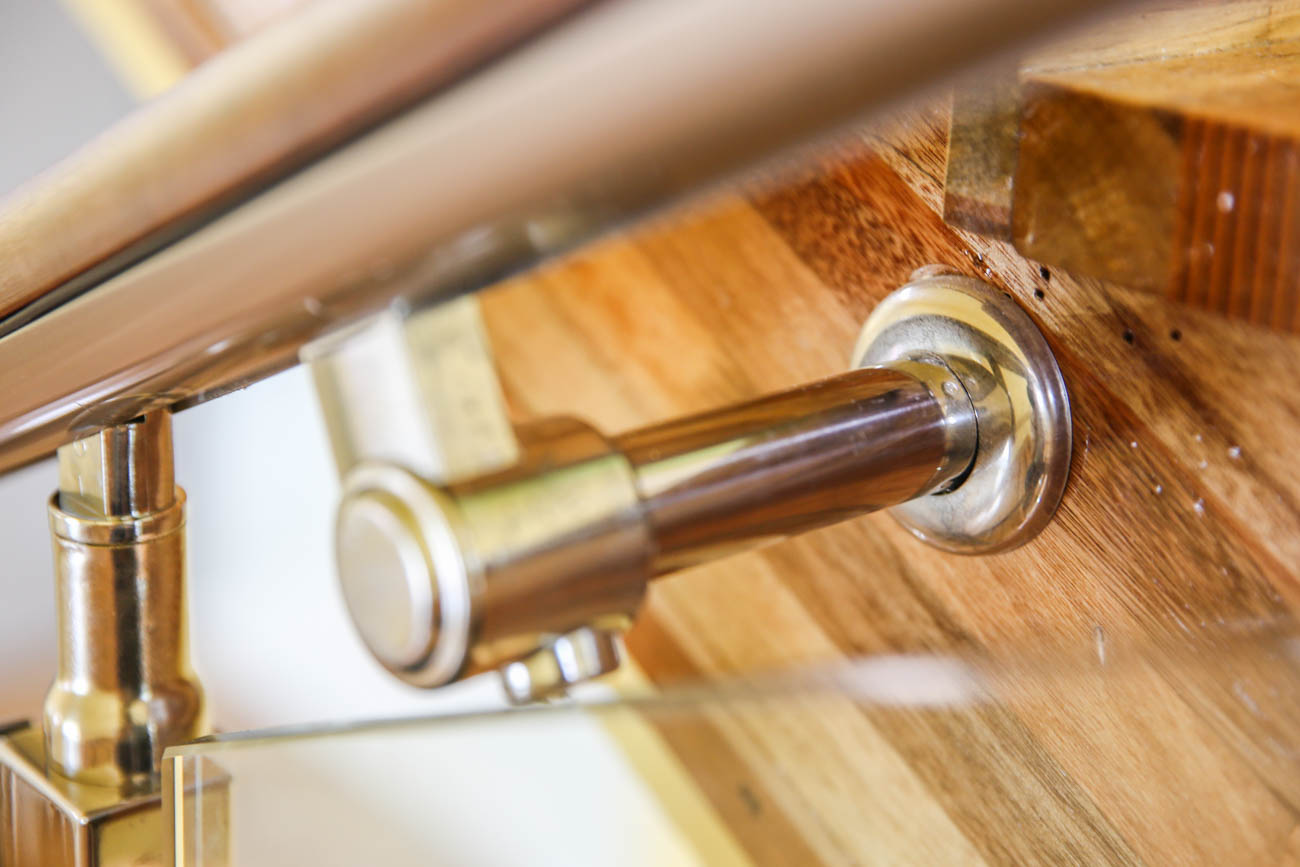 또한 상단 손잡이는 벽 고정, 하단 손잡이는 포스트 고정 방식으로 이중 지지 구조를 만들었습니다.