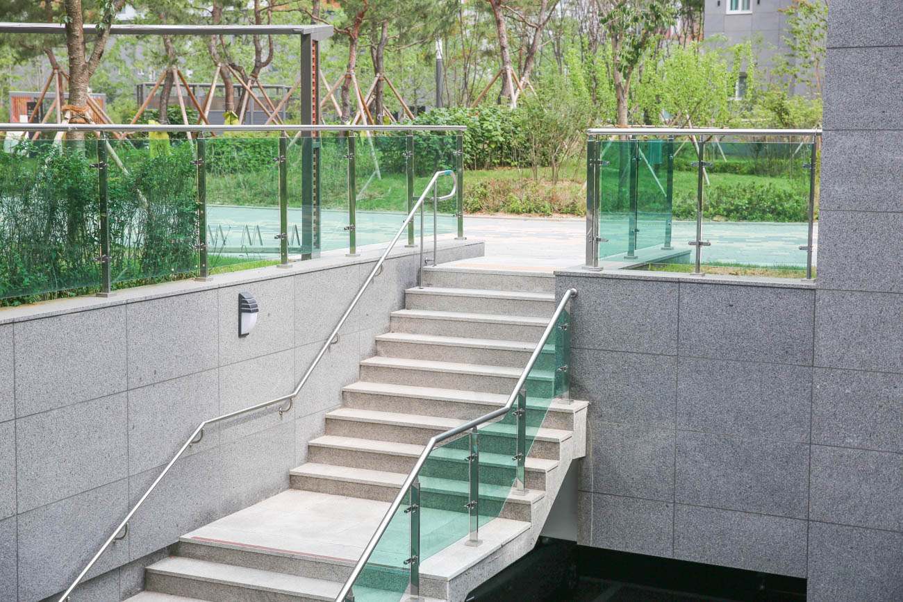단지 내 썬큰 공간 두 곳에 강화유리난간을 설치하여